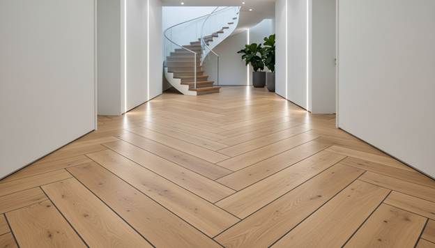 Texture is a major sensory trend this year. While smooth floors are classic, 2026 favors “Tactile Surfaces.” Light wire-brushing and subtle hand-sculpted edges provide a 3D quality to the floor that hides daily wear and tear while feeling incredible underfoot. Our French Galerie collection is a perfect example of this artisan-crafted texture.