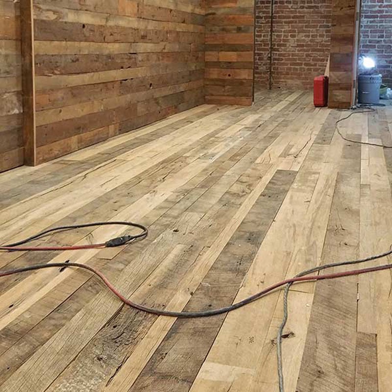 These floors come in either solid or engineered. They are especially unique because they are made from reclaimed woods. They come from old barns, logs, boats that have been retrieved from lakes or rivers, usually 100 Years and more. These floors are unique and especially attractive to those who are interested in utilizing sustainable flooring. It is available in Red/White Oak, Walnut, Hickory, Elm, Teak and others, in prefinished and/or unfinished.
