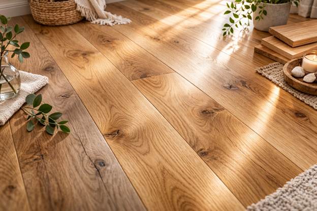Natural Oak has become the new neutral of 2026. Instead of heavy stains that hide the wood’s character, designers are choosing Invisible or Clear finishes that showcase the wood’s natural golden hues.
